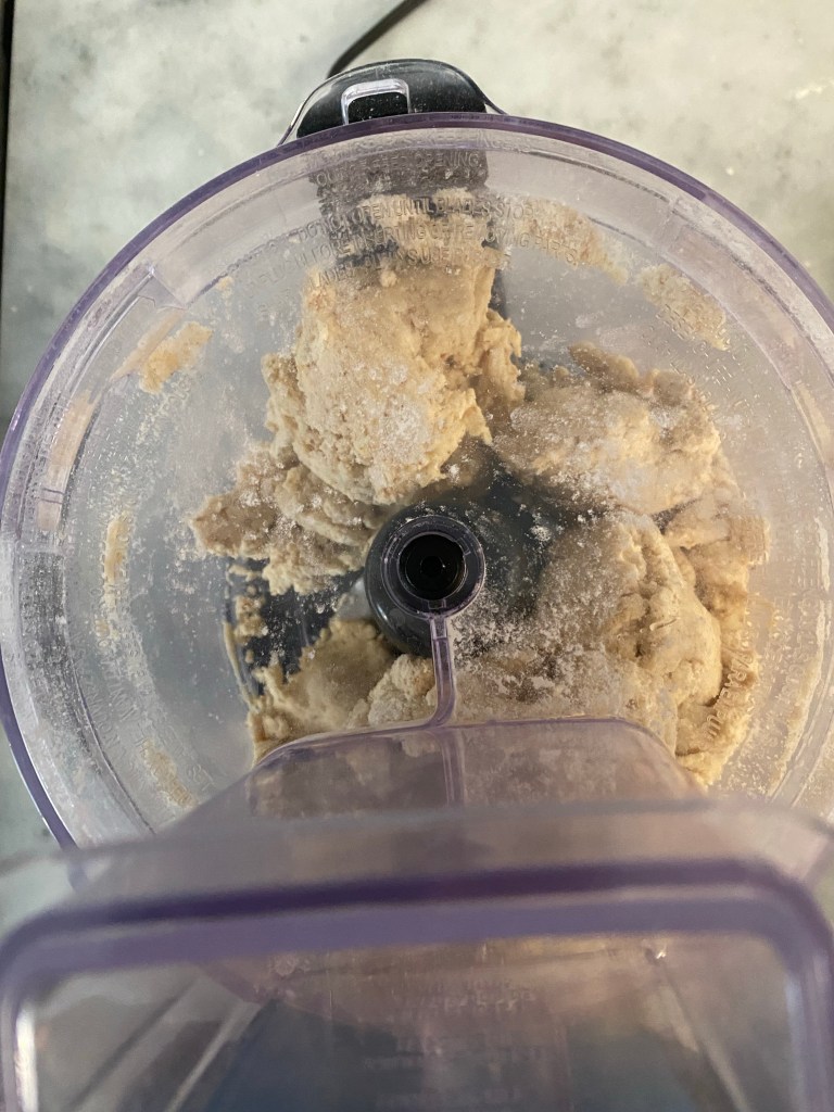 - Combine flour, flax meal, salt, and coconut sugar into a food processor bowl and pulse to blend.