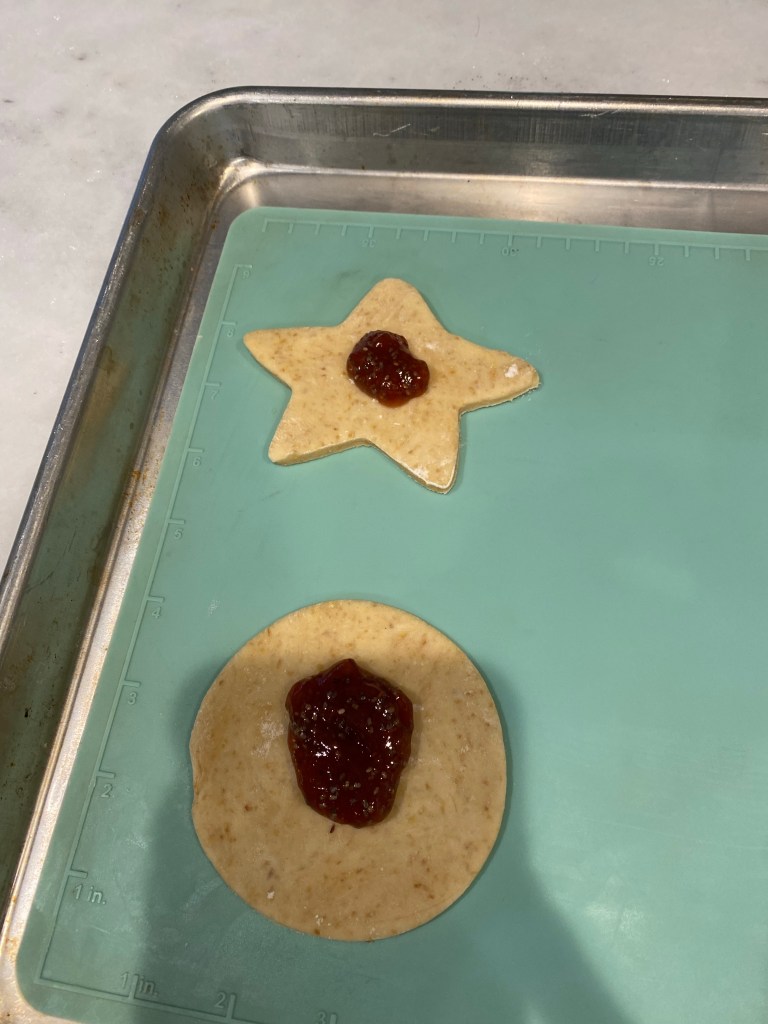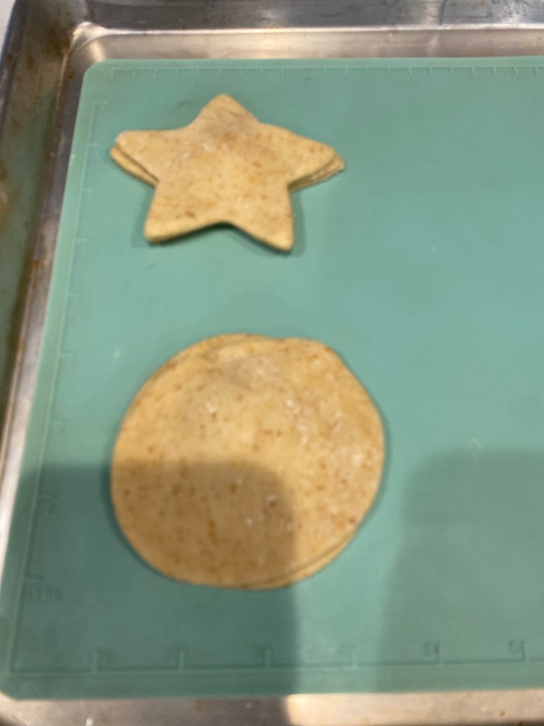 - Preheat oven to 375 degrees F and line two baking sheets with parchment paper or silicone mats. Roll dough out on a floured surface to a 1/8 of an inch thick.