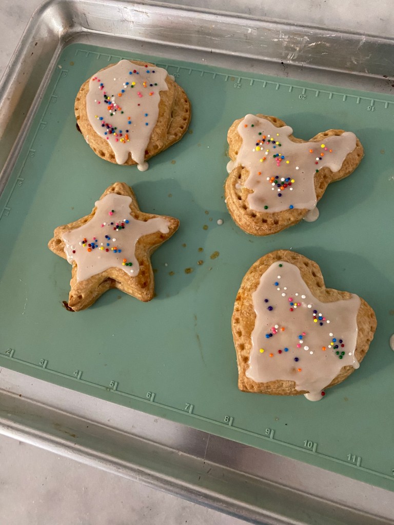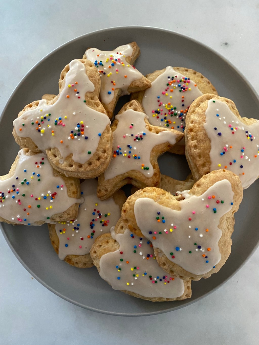 - Cool on wire rack. While cooling mix the glaze ingredients and when pastries are cooled top with glaze and sprinkles.