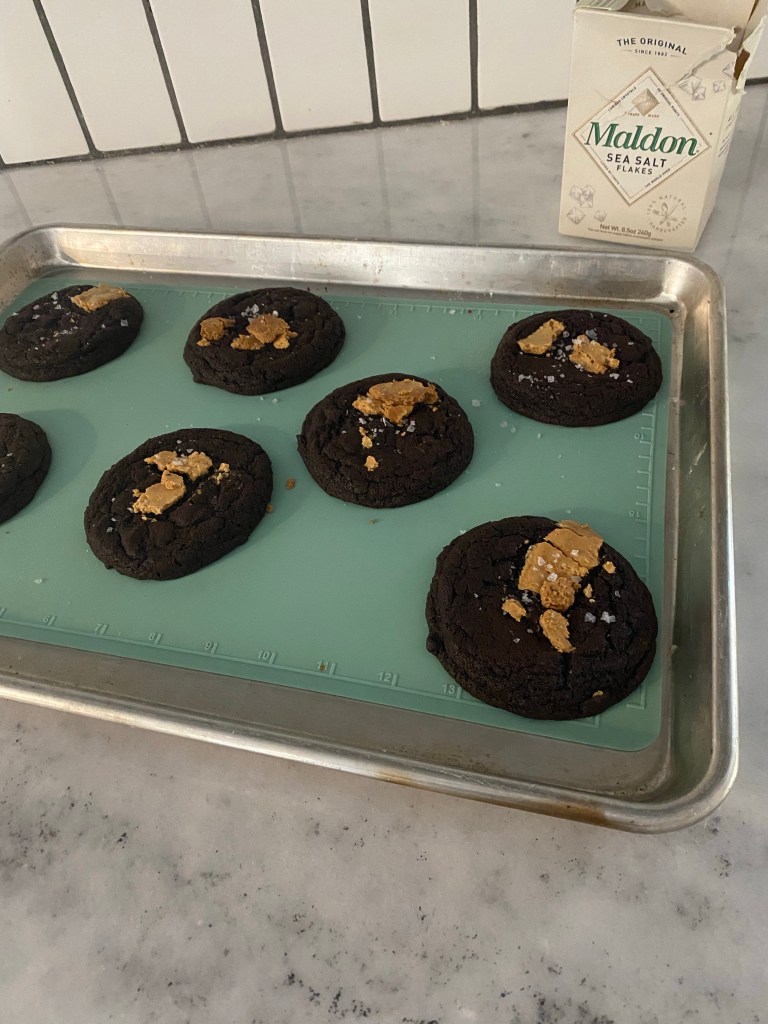 - Top each cookie with flaky sea salt and bake for 10-12 minutes. Allow to cool on baking sheet for 5 minutes and the move to a cooling rack.