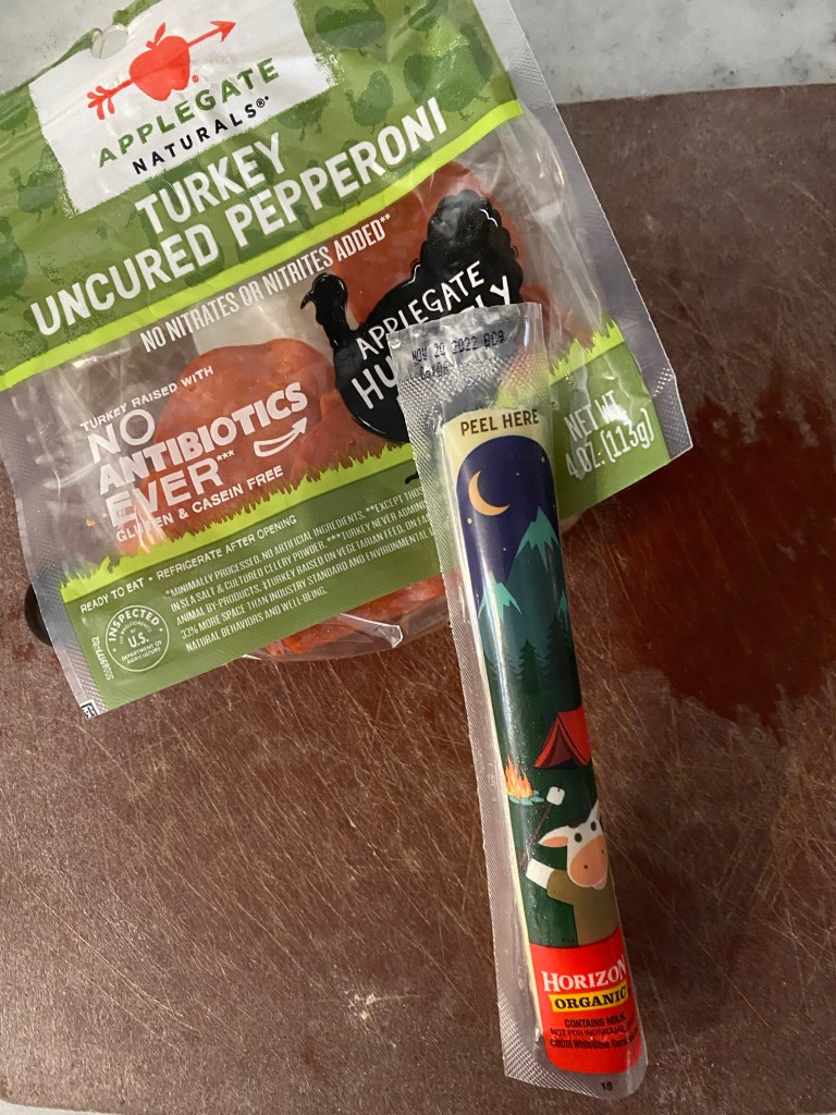 Need a quick dinner or snack idea for the kiddos? All you need is hot dogs and refrigerator crescent roll dough or mozzarella sticks, pepperonis and crescent roll dough.