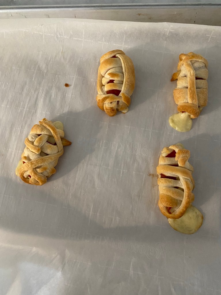 What you need: package of hot dogs and refrigerated crescent roll dough.